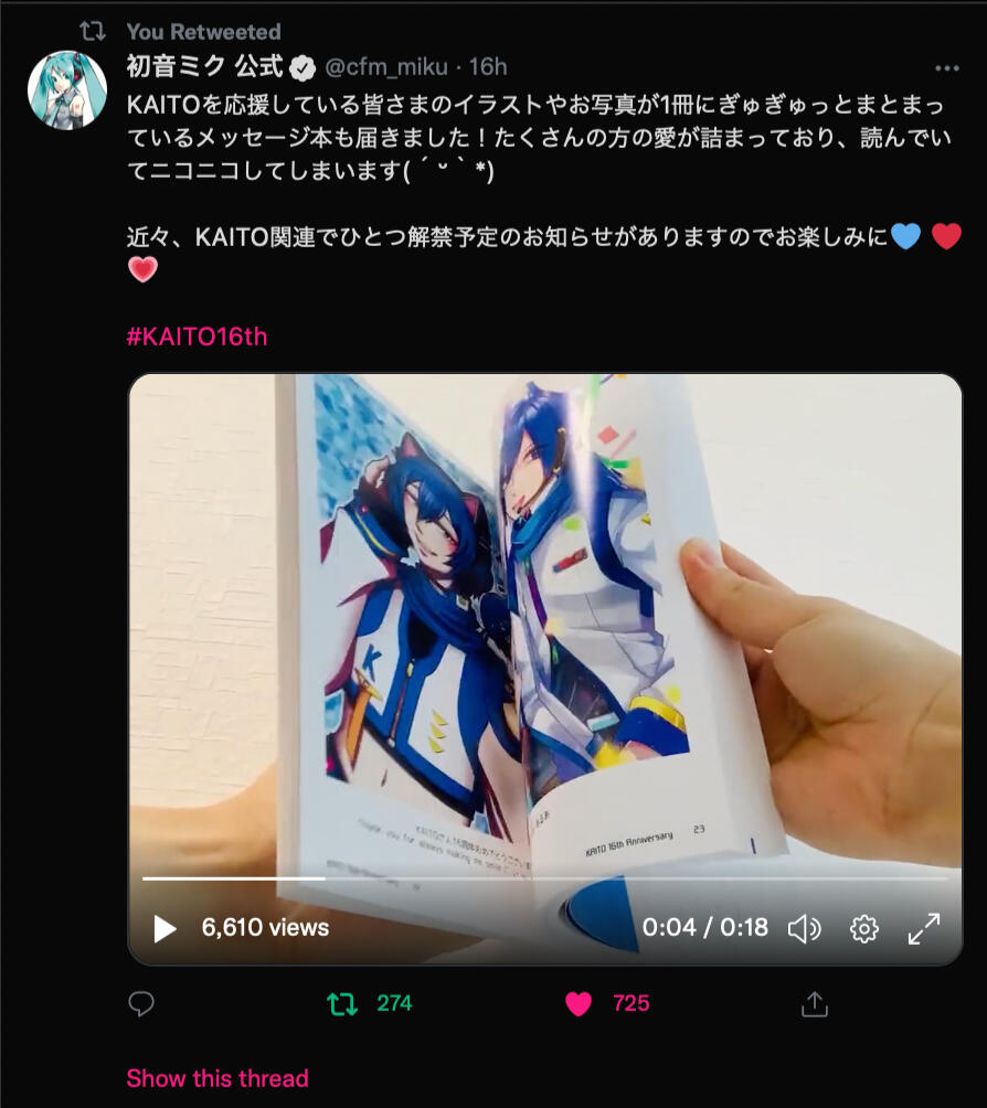 Miku EXPO Let's Go 2016 backer, Miku EXPO 2021 Online backer, Miku EXPO 2023 VR backer, Makeship KAITO Plush backer