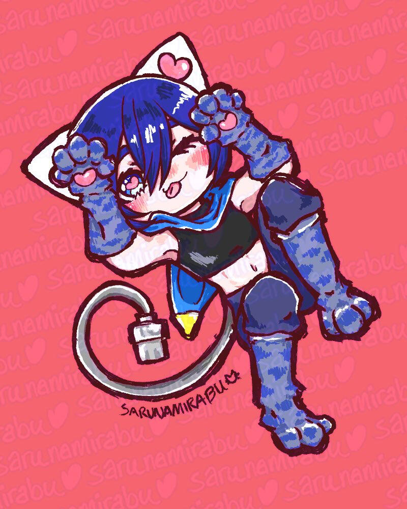 「うちのKAITO」, the KAITO of my household, named "Kaito". Recognizable traits are his pink heart pupils and detachable cat ears with pink hearts. I love him very much.
